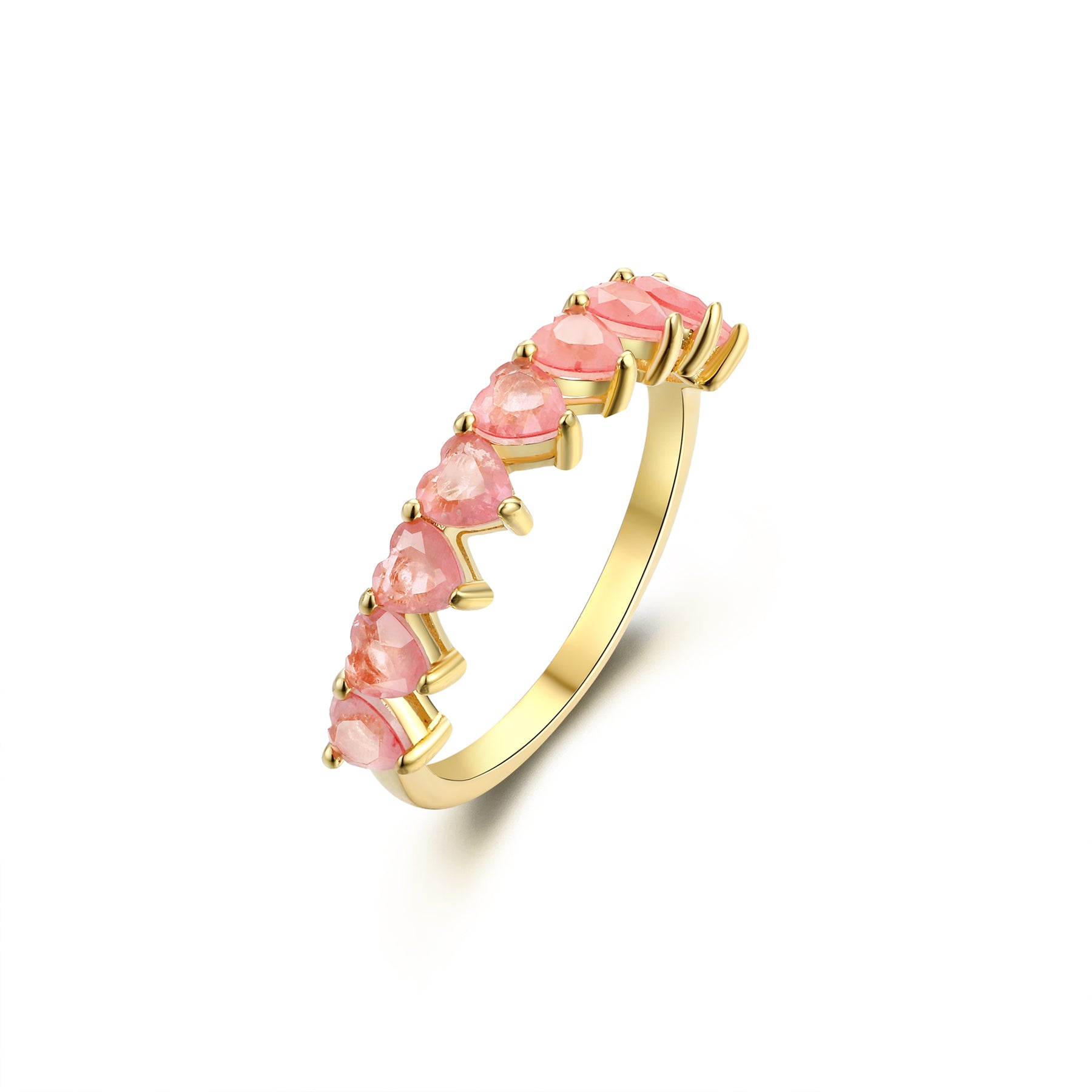 A dreamy line of hearts sit on your finger. Crafted in .925 sterling silver, plated in 14k gold.