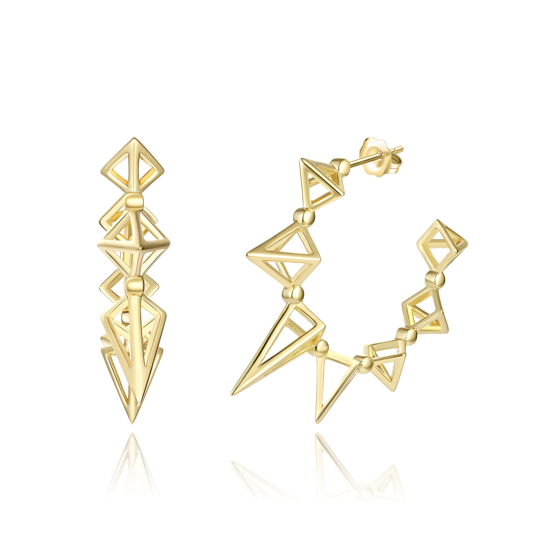 These heavenly hoop earrings are named after the North Star and are sterling silver .925 plated in yellow gold. Polaris is the brightest star in the constellation Ursa Minor and these earrings reflect an intricate geometric starburst pattern, perfect for the modern starchild. Please note that this is plated jewelry and will need to be re-plated after 1-2 years with proper care.