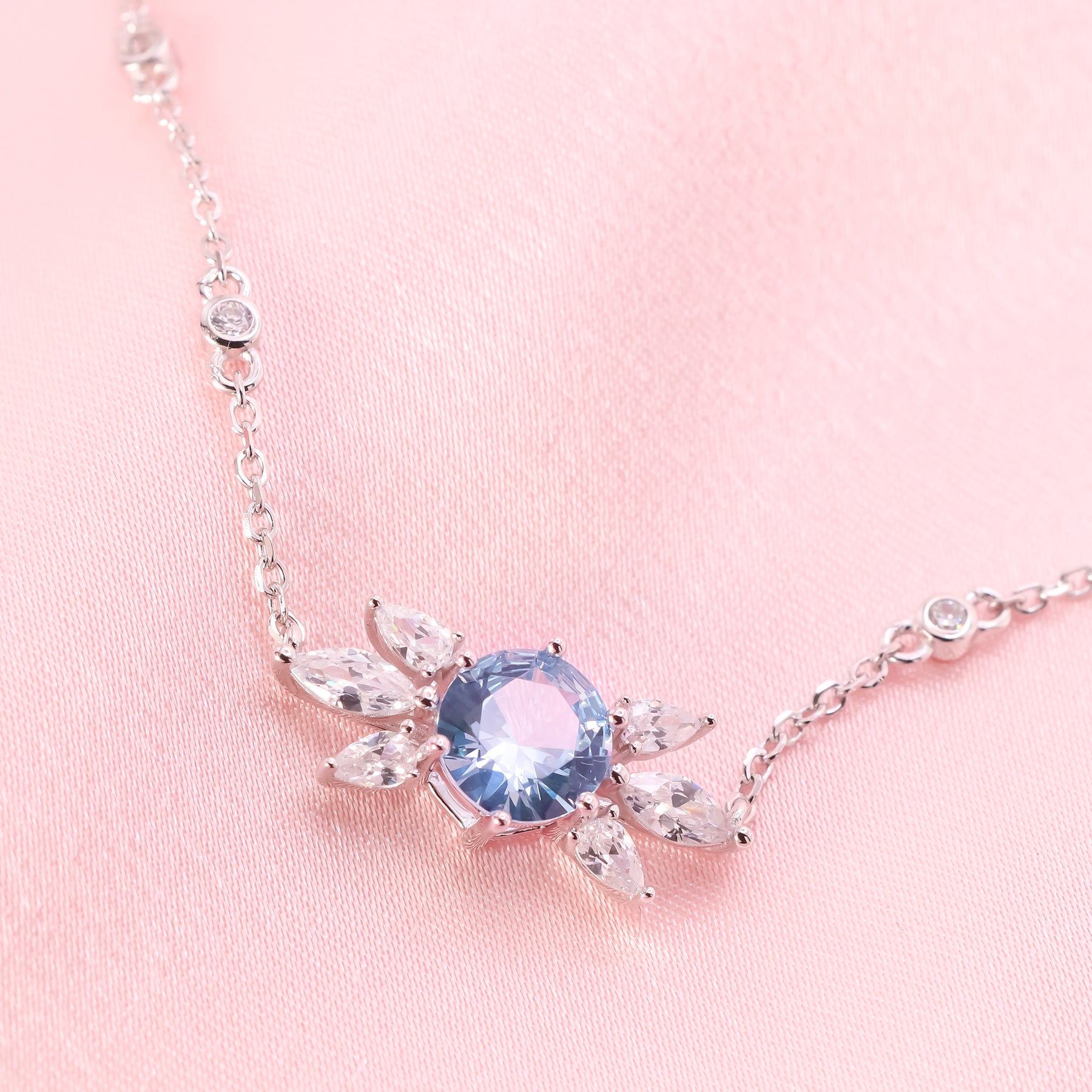 This necklace is available in your choice of brass or sterling silver .925 for extra comfort. It is plated in Rhodium and featuring cz stones. It measures approx 16" +2 inches.